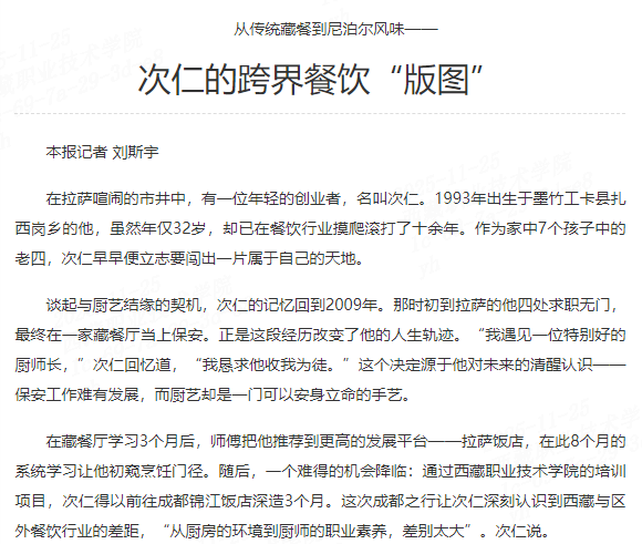 本报记者 刘斯宇在拉萨喧闹的市井中,有一位年轻的创业者,名叫次仁。1993年出生于墨竹工卡县扎西岗乡的他,虽然年仅32岁,却已在餐饮行业摸爬滚打了十余年。作为家中7个孩子中的老四,次仁早早便立志要闯出一片...