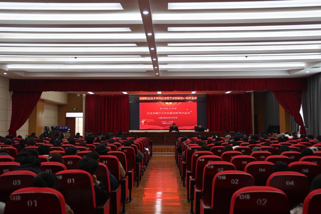 扎西巴珠副校长指出,历史是最好的教科书,现实是最生动的例证。67年沧桑巨变充分证明,翻身解放是西藏各族人民的幸福起点,共同富裕是雪域高原的奋斗目标,而铸牢中华民族共同体意识,是实现西藏一切发展进步的根本保障。希望全校师生以此次专题宣讲为契机,从西藏民主改革的伟大实践中汲取奋进力量,铭记历史、感党恩,自觉做中华民族共同体意识的坚定信仰者、积极传播者、模范践行者;始终牢记习近平总书记“共建中华民族共同体,书写美丽西藏新篇章”的殷殷嘱托,把爱国情、强国志、报国行融入日常工作学习中;立足岗位、实干担当,以更加昂扬的姿态投身教育教学、技能提升与校园建设,切实把学习成果转化为推动学校发展的实际行动,为建设美丽幸福西藏、共圆中华民族伟大复兴的中国梦贡献藏职院的智慧和力量。