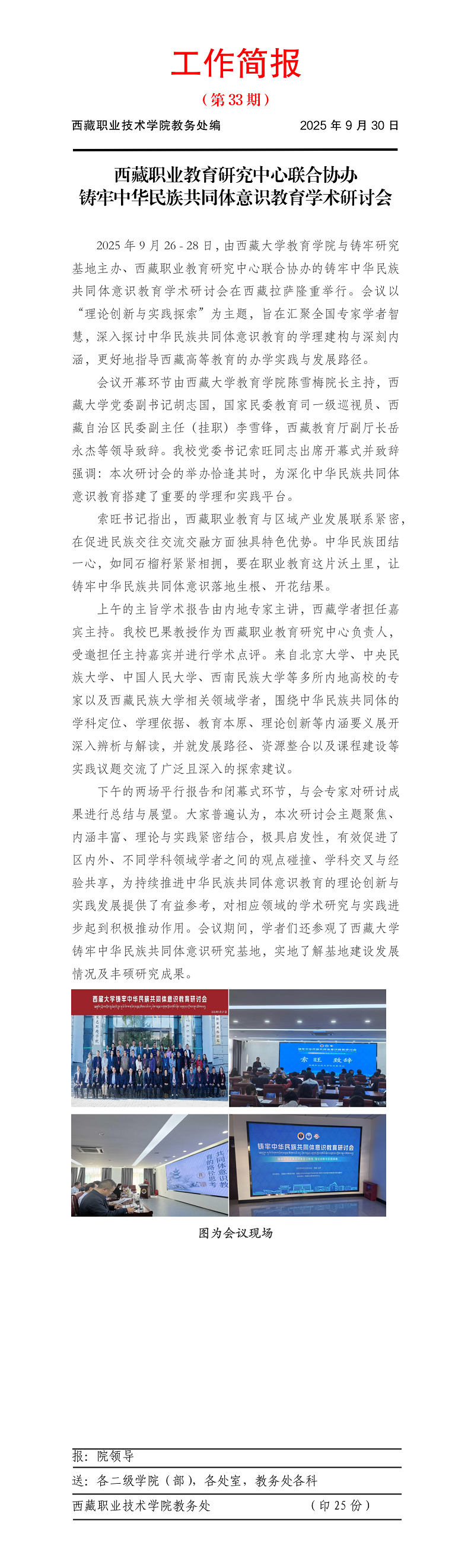 西藏职业教育研究中心联合协办铸牢中华民族共同体意识教育学术研讨会