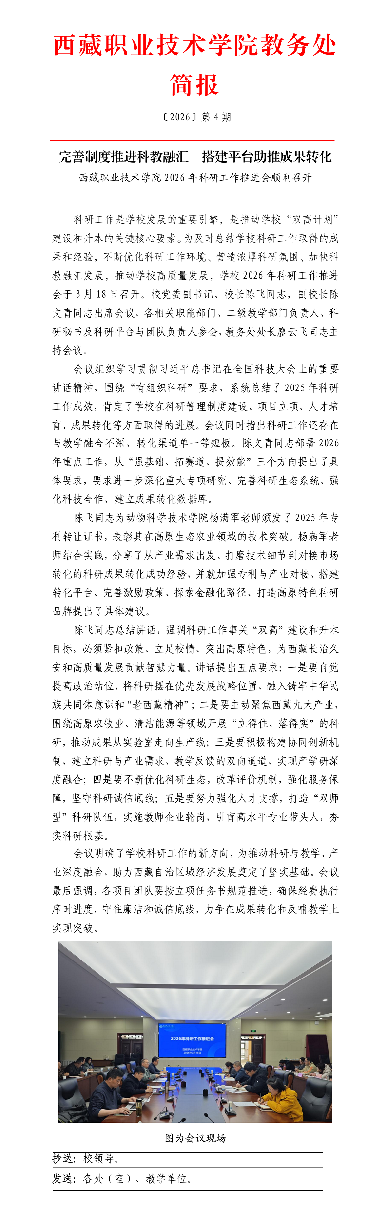 完善制度推进科教融汇 搭建平台助推成果转化 ——西藏职业技术学院2026年科研工作推进会顺利召开