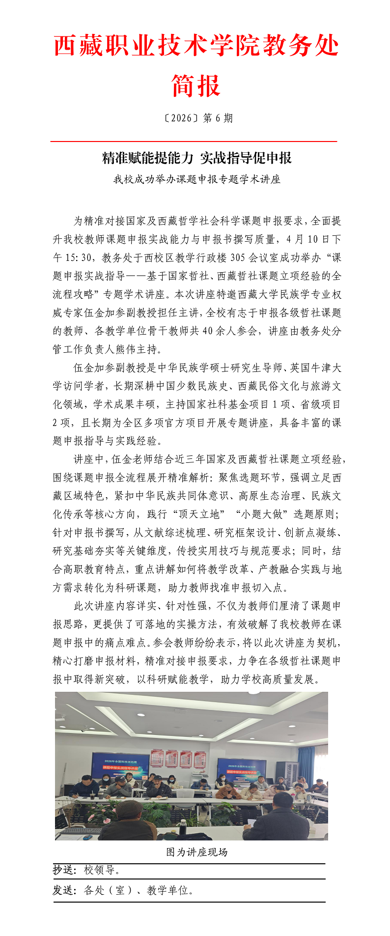 上一条:我校成功举办中国知网“从信息到洞见”专题讲座 下一条:赛课赋能促成长 匠心育人筑根基 西藏职业技术学院2026年青年教师教学竞赛活动圆满结束
