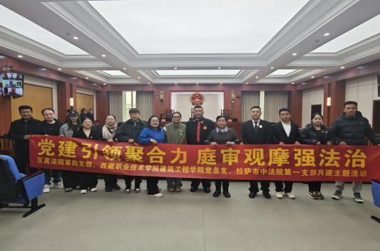 为深入贯彻习近平法治思想,落实校党委关于法治校园建设的战略部署与依法治校理念,深化校法合作育人机制,2025年10月29日上午,建筑工程学院党总支联合自治区高法院第四支部、拉萨市中法院第一支部,共同开展“党建引领聚合力 庭审观摩强法治”校政共建主题党日活动。校党委书记、副校长索旺同志以普通党员身份出席所在支部活动并邀请了校党委副书记、校长陈飞等班子成员共同参与了活动,建工学院无课教师全程参与。活动得到自治区高法院第四支部、拉萨市中法院第一支部的大力支持。