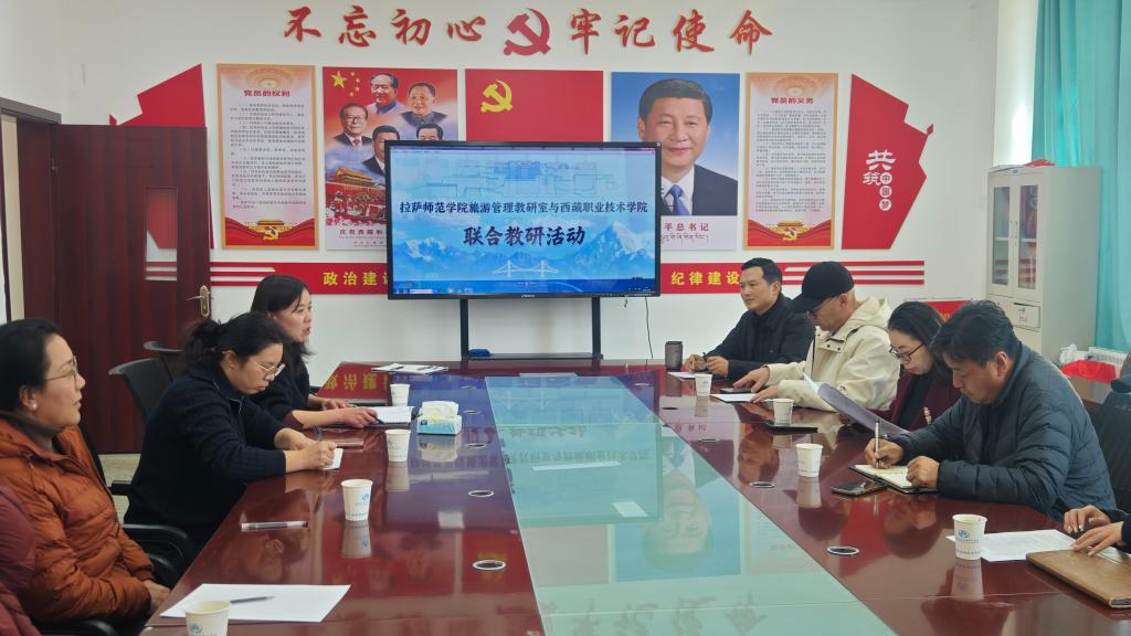 为深入学习贯彻习近平总书记重要回信精神,强化党建引领专业建设实效,拓宽校企合作与校际交流渠道,2025年11月25日,旅游与文化学院党总支书记旦增晋美,副院长王晴、党总支委员及教工支部委员、教师党员代表、旅游管理、导游、酒店管理教研室主任等一行,赴拉萨师范学院、拉萨市第二中等职业技术学院等院校开展专项调研,并同步开展主题党日学习活动,为学院高质量发展筑牢根基。