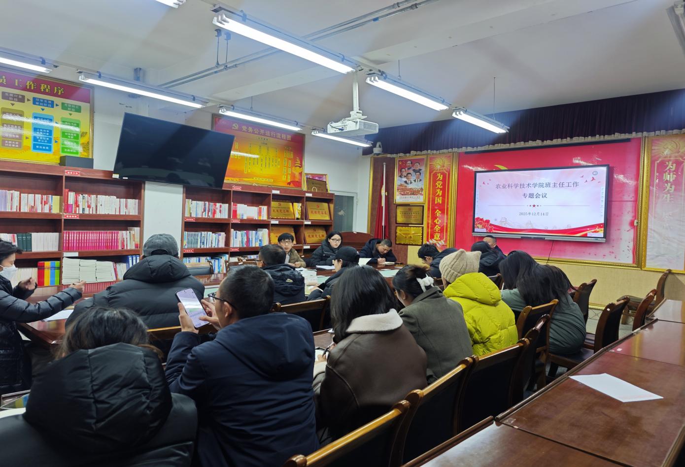 为深入贯彻落实学院党委关于稳定安全和学生管理工作的最新部署,坚持立德树人根本任务,聚焦学生全面发展,强化思想政治引领,强化班级管理责任,进一步提升班主任工作实效,根据学院党总支的整体工作安排,于25年12月14日晚召开了班主任工作会议,会议由党总支副书记曲尼仁卓同志主持,学管科岗位负责人索朗德吉、全体辅导员、班主任参加了会议。