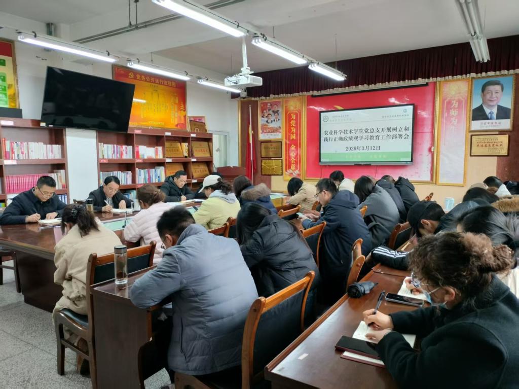 为深入贯彻党中央及自治区党委、学校党委部署,扎实开展树立和践行正确政绩观学习教育,3月12日,农业科学技术学院党总支召开了开展树立和践行正确政绩观学习教育部署会,学院领导班子、各科室、各教研室主任、全体教职工参加了会议,会议由党总支书记狄宏宇主持。