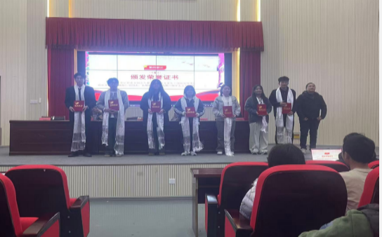 会议首先对年度优秀学生干部进行表彰,学院领导为获奖学生颁发荣誉证书,充分肯定上一届团学干部在服务同学、校园建设、学风整顿、民族团结等工作中的辛勤付出与突出成绩,号召全体学生干部以先进为标杆,践行青年担当。随后,领导班子为新任团学干部逐一颁发聘书,正式完成团学骨干的新老交接,勉励新任干部扛起责任、履职尽责。