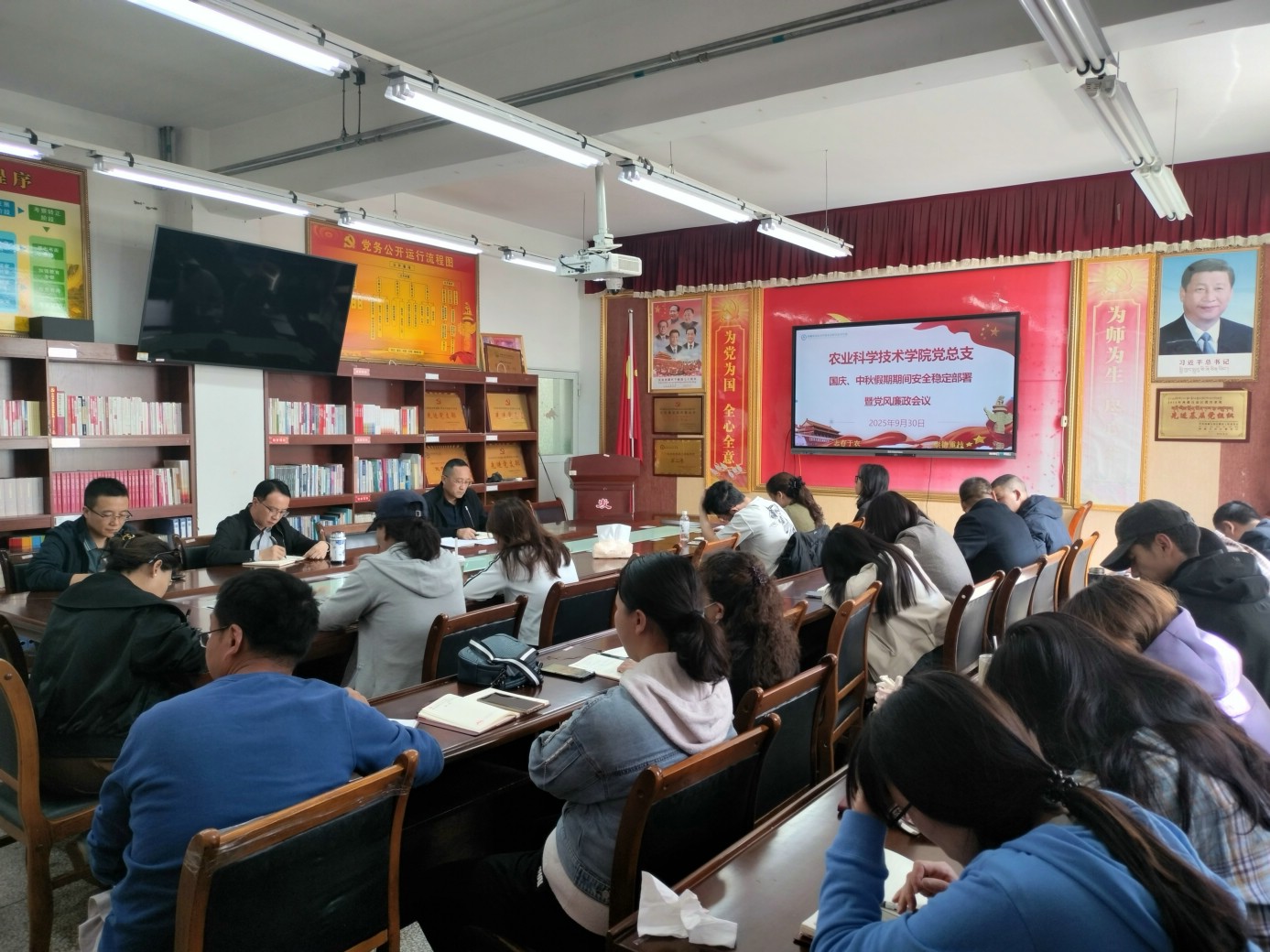 为深入贯彻全面从严治党要求,压紧压实党风廉政建设责任制和“一岗双责”,9月30日下午,农业科学技术学院召开国庆和中秋双节党风廉政建设工作专题会议。会议由党总支书记狄宏宇同志主持,全体教职工参会。