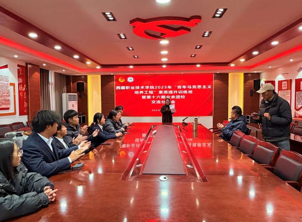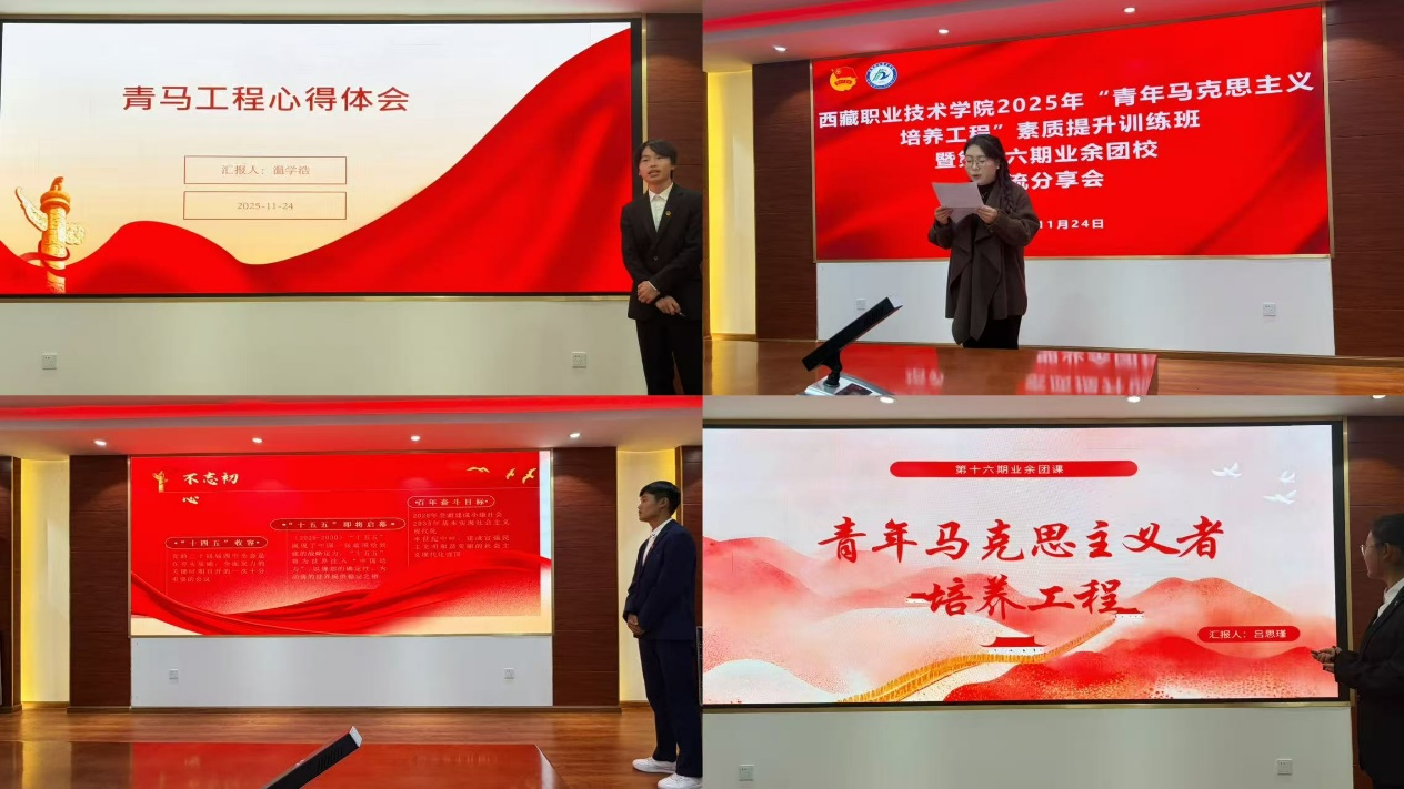 为深入贯彻落实习近平总书记提出的立德树人根本任务,筑牢“青年马克思主义者培养工程”的育人根基,引导青年学员坚定理想信念,提升综合素养,2025年11月24日中午,校团委于A25-401党员活动室组织召开了2025学年“青年马克思主义者培养工程”素质提升训练班暨第十六期业余团校结业典礼及交流分享会。校团委负责老师与优秀学生代表参加典礼并分享此次青马工程学习过程中的收获与感悟。