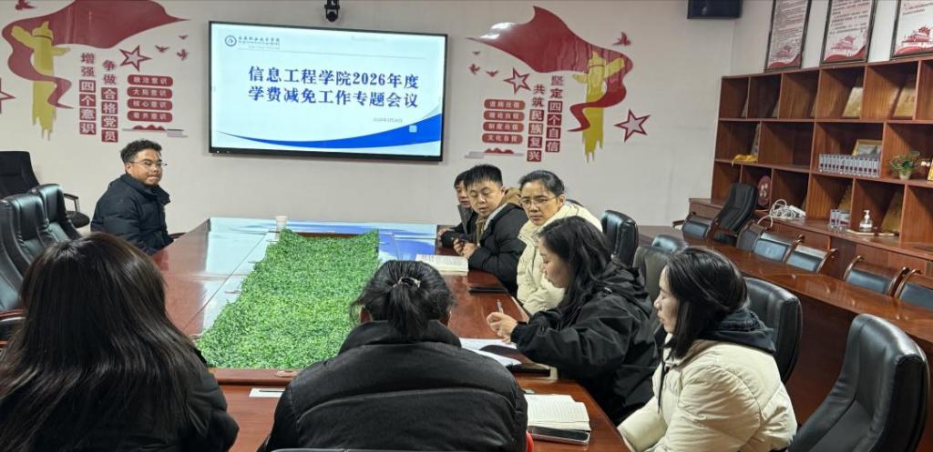 根据生工作处《关于推荐2026年度学生学费减免的通知》要求,信息工程学院于3月26日在学院党员活动室召开2026年度学费减免工作专题会议,全体资助工作小组成员及学生代表参会