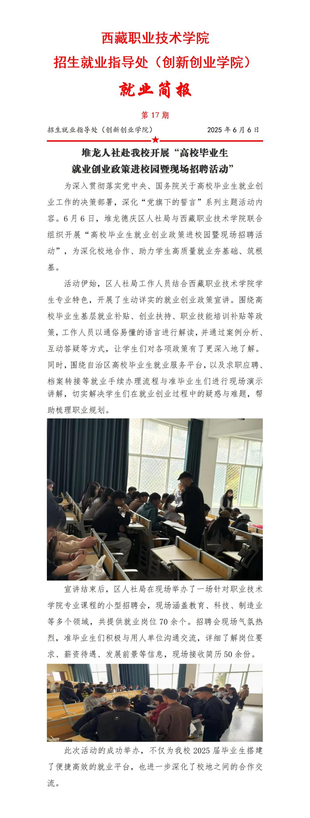 堆龙人社赴我校开展“高校毕业生就业创业政策进校园暨现场招聘活动