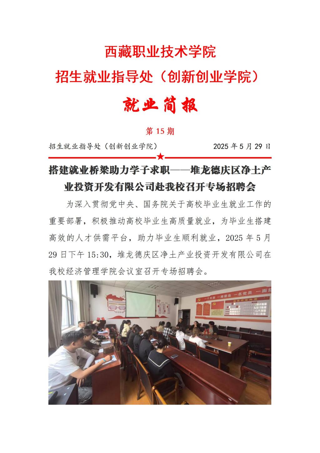 搭建就业桥梁助力学子求职——堆龙德庆区净土产业投资开发有限公司赴我校召开专场招聘会