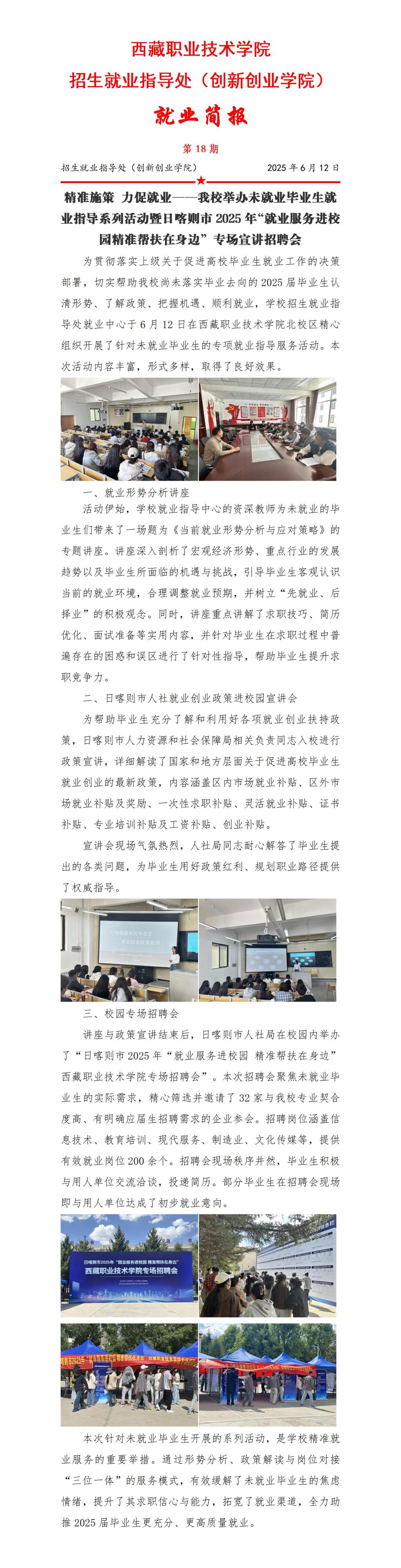 精准施策 力促就业——我校举办未就业毕业生就业指导系列活动暨日喀则市2025年“就业服务进校园精准帮扶在身边”专场宣讲招聘会
