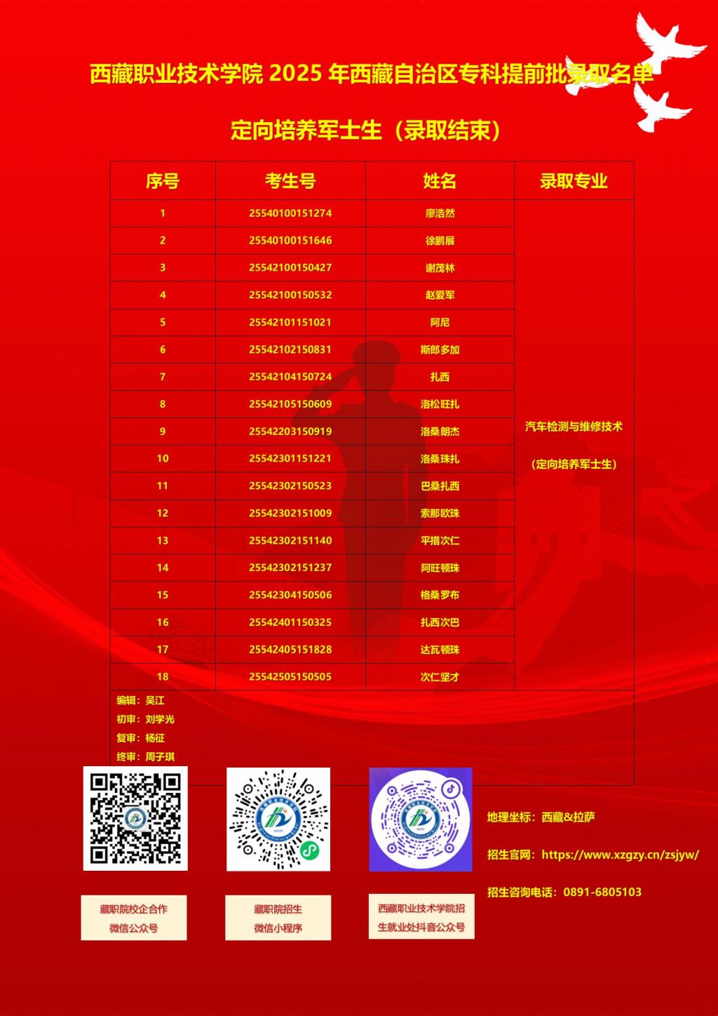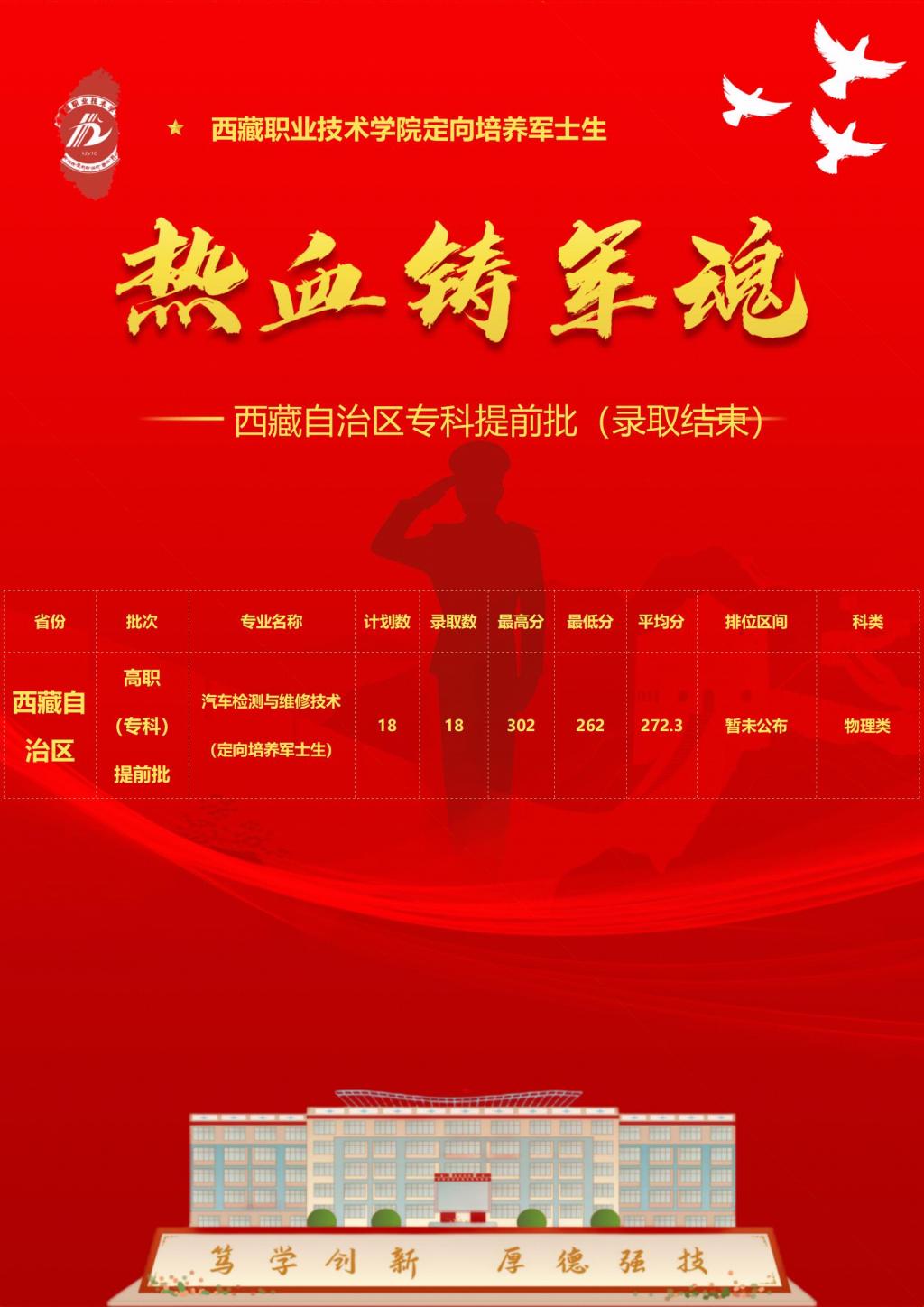 【招生信息】西藏职业技术学院2025年西藏自治区专科提前批定向培养军士生录取结束