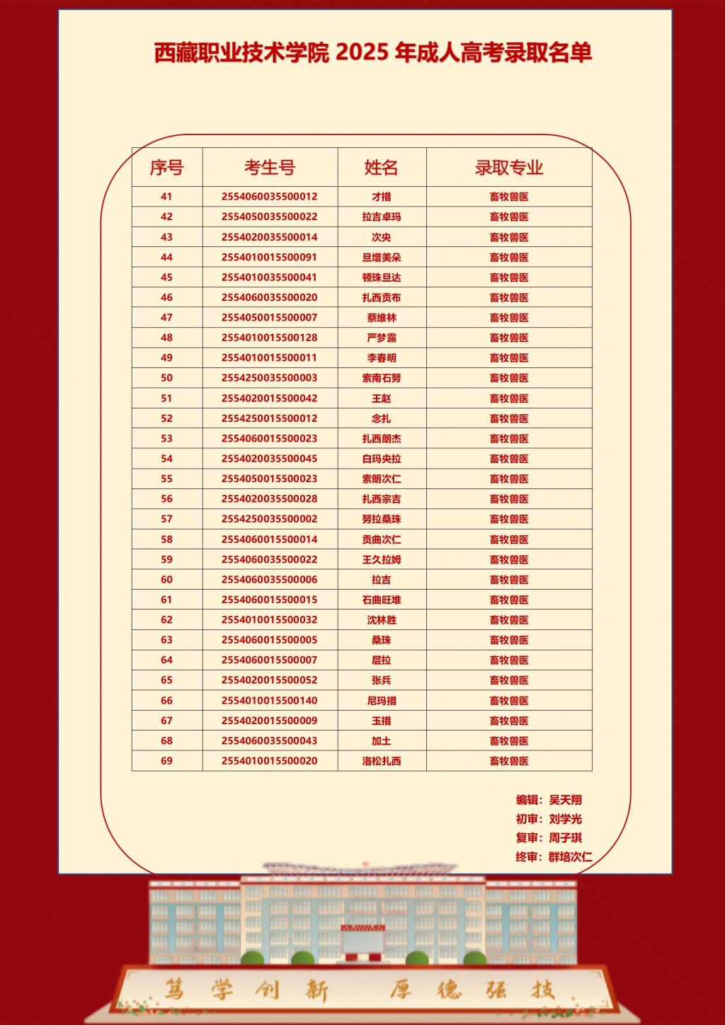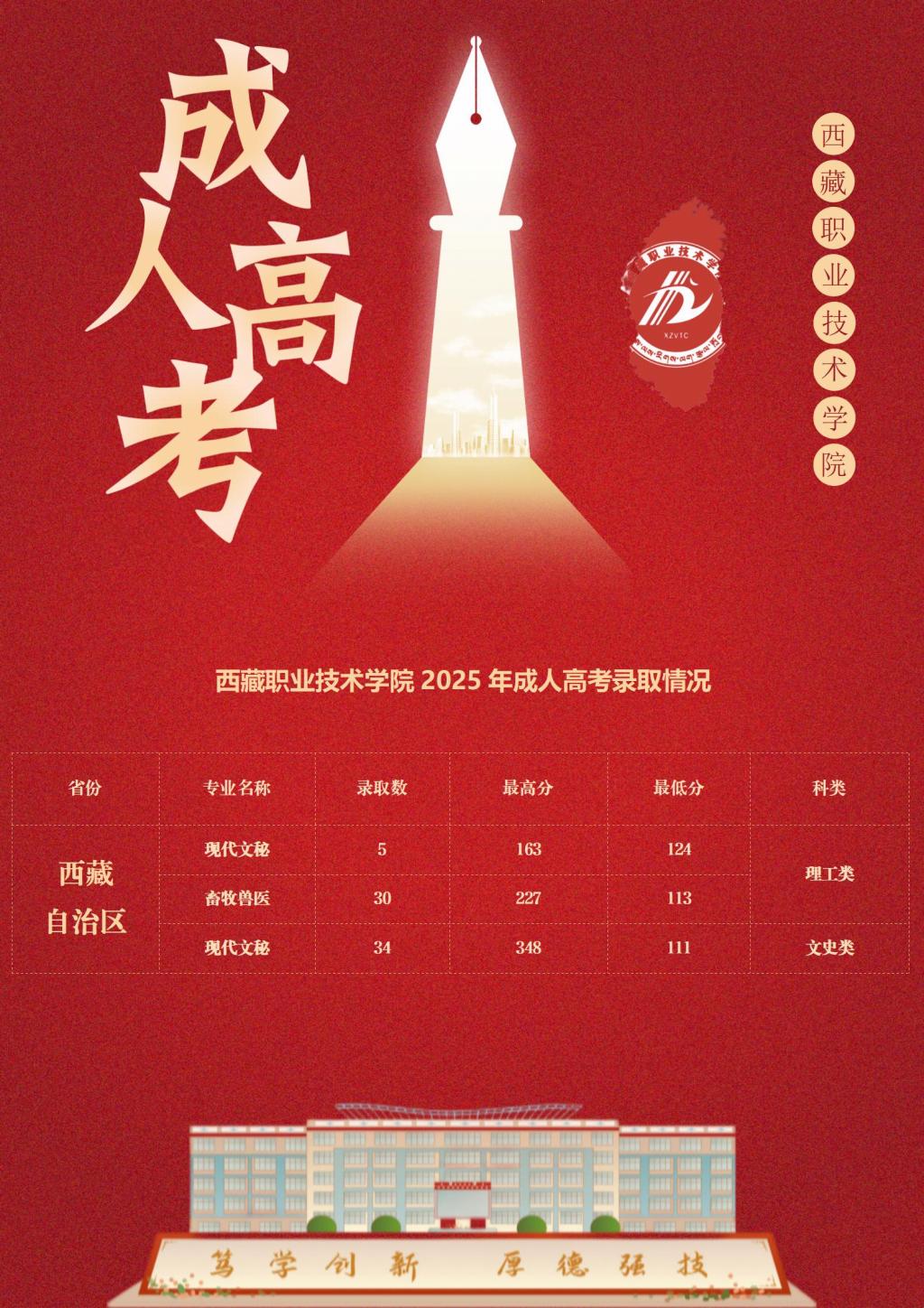 西藏职业技术学院2025年成人高考录取情况(现代文秘、畜牧兽医)