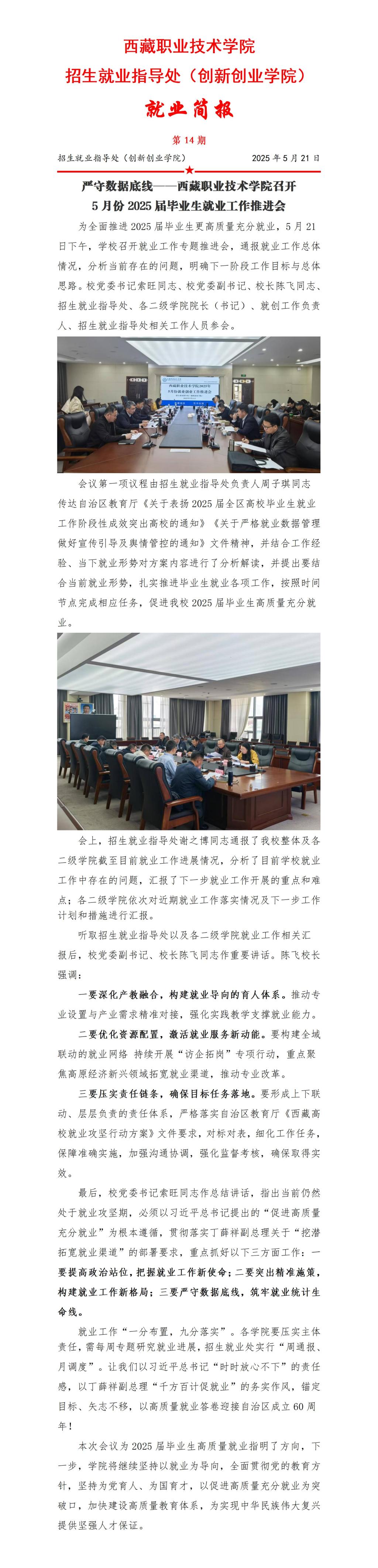 严守数据底线——西藏职业技术学院召开5月份2025届毕业生就业工作推进会