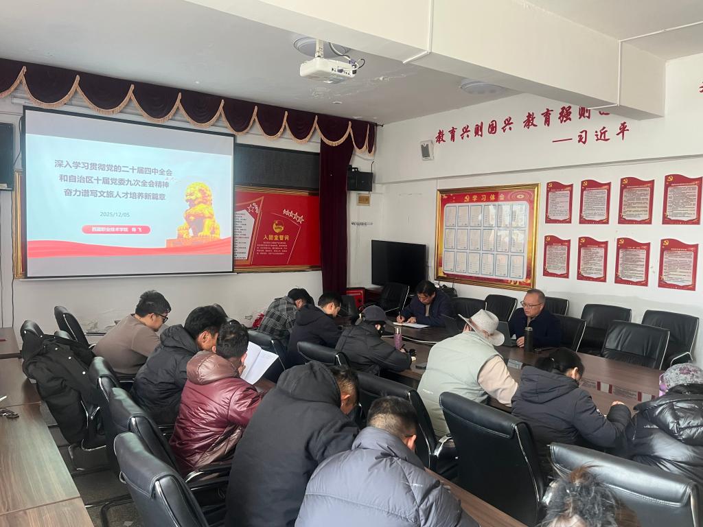 陈飞校长的党课内容丰富、针对性强,深化了教师对全会精神的思想认识,理清了文旅人才培养的具体路径,激发了大家投身西藏职业教育改革的使命感,凝聚了全体教职工“为党育人、为国育才”的坚定共识,为学校“十五五”教学实践指明了努力方向和奋斗目标。